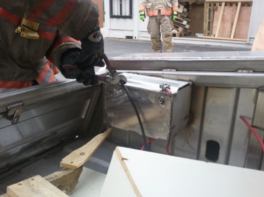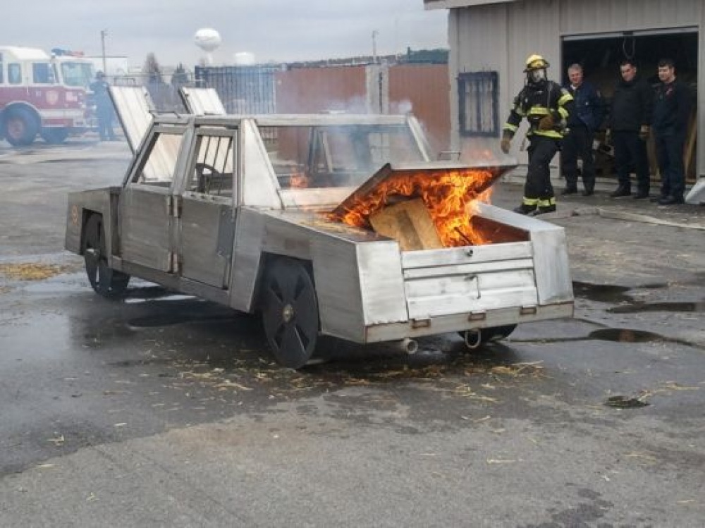 The American Fire Training Systems Extrication Vehicle prop has been updated on construction and evolutions. We are making this prop from heavy-duty stainless steel for Class "A" material and Class "B" propane pans (which can be slid under the different compartments). Various extrication evolutions are built in with a minimum number of consumable parts. Click here to view the manual for an explanation on the design and evolutions the Vehicle has to offer.